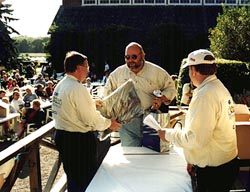 ![]() As I waited for the rally to start, I could not believe the number and the variety of Volvos that filled the parking lot at the Volvo dealership where we met. The VROM coordinators had their hands full at keeping everything running smoothly, and they did a great job. Soon we were on our way. Life was good. There I was, a guy from California, riding in a vintage Volvo through the Swedish countryside on a beautiful, sunny day with a couple from London and everywhere we turned, more vintage Volvos. Our only tasks were to have fun and try to answer questions about Volvos and local history in the hope of scoring the most points. We didn't win, but we had a great time. The rally ended with literally hundreds of vintage Volvos parked on the front lawn of a magnificent castle that was built at the turn of the century. I got as far away as I could in order to take a picture of all these cars in front of this castle. Every time I thought that the last one had arrived, another would show up. I could not get them all into the same picture, even with the help of my wide-angle lens, so I left out the castle. Next, dinner was served (no shrimp this time) and awards were handed out. I had joked earlier with some of my new friends that I might receive the longest distance traveled award. I was only kidding. I didn't even know if they gave such an award. Besides that, I was sure that if there was one, it would go to someone who drove there, but sure enough, I came home with a nice trophy and a number of Volvo-related gifts. Once again I was introduced to the group. The master of ceremonies asked me how many and what kind of Volvos I owned. I was humbled to tell them that I owned only one Volvo -- an 1800E -- although I had once owned an 1800S when I was younger. Nevertheless, I was welcomed with opened arms, but somehow I left with the feeling that a person shouldn't own only one Volvo. I know many of you will support me in this.
