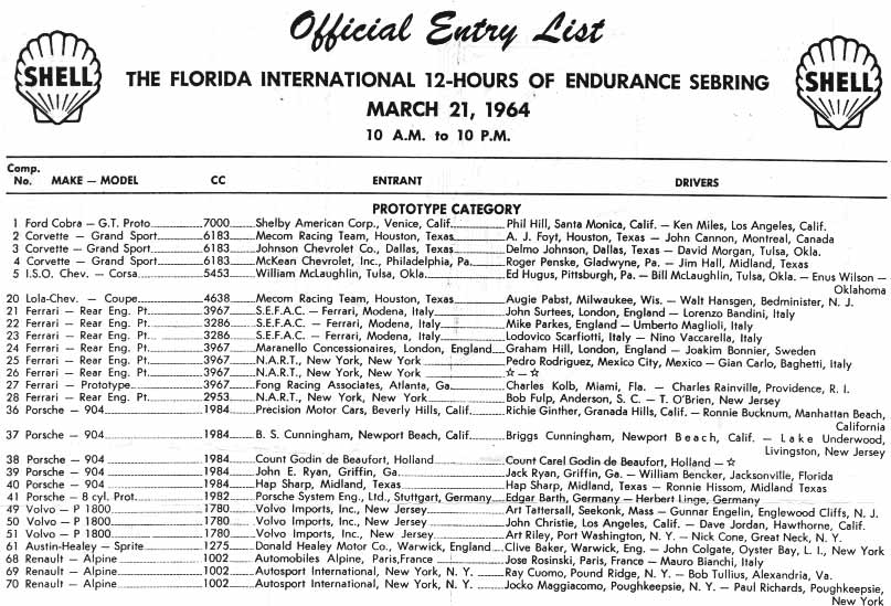 Top portion of Sebring 1964 program... look at some of those names!