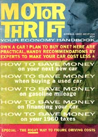 There's an article to the contrary called "Make Your New Car Last Forever." The author takes the position that it is cheaper to keep repairing your old car than it is to trade it in, no matter what, and details his experience of keeping a '53 Chevy going for seven years and 98,000 miles (I don't know where he lived, but rust apparently was not a problem there). During those seven years, he had the engine rebuilt twice, replaced the entire exhaust system three times, ran through innumerable tires (he didn't buy them in sets), wore out a clutch and had all sorts of electrical repairs performed ( and much, much more) -- and was happy with the achievement. None of this seemed ironic to most people in 1960 -- Americans were proud of their cars; European imports were either sports models for wealthy playboys or tiny economy cars clearly unsuited to our long distances. One did not travel the length of route 66 in an Isetta, after all -- the "Saturate Before Using" bag would likely have tipped the car over on its nose. Many families developed loyalty to a particular make. In my family, that make was Ford. My uncle started this off in 1956 with a black and white Victoria, complete with "Police Interceptor" motor, automatic transmission, and power brakes and steering. He chose this car above all others because Ford touted safety features in its cars -- the only one I can remember was the dished steering wheel (which meant the steering column would spear you a few milliseconds later than in a Chevy if you T-boned a tree, I suppose). That car cost a hunk of change in those days (contrary to popular belief, cars were not cheaper then than now), and he set out to make it last forever -- in fact, it was still going when he sold it around 1990, but hadn't been in regular use for years. Anyway, my parents followed by buying a new Ford in '57. When the family needed a second car, they bought a used '52 Ford. The '57 gave way to the '61, and when that fell apart in two years, to the '63 and subsequently the '66. Such things were not considered masochistic in those days. My parents were not sporty drivers and cared nothing for things mechanical, but each new Ford had the top-of-the-line V8 under the hood. Indeed, Motor Thrift lists which options will pay you back at trade-in time -- the only thing that added as much value to your trade-in as it cost to buy new was a V8 motor. The closing irony in that issue of Motor Thrift is the final section, in which are introduced America's new breakthroughs in automotive engineering and economy: the new Chevrolet Corvair, Ford Falcon and Plymouth Valiant. I don't need to comment on this, do I? It is interesting that those cars were soon subject to horsepower inflation -- the Corvair went out after five years with a 180-horse turbocharged unit, the Valiant became the Barracuda (440 six-pack, anyone?) and the Falcon showed up in new sheet metal as the Mustang (eventually getting a 429 CobraJet motor to haul it around). But I digress. The motto of the whole Motor Thrift issue seems to be "Buy a new car with a huge motor, drive it as slowly as possible for three years, and then replace it as soon as the payment coupons run out." In my family, as old Fords became unavailable, our second cars became used VW Beetles. These were essentially disposable cars -- if the clutch started to go, you took it back to the lot and bought another one. They were dirt cheap, got you around town reliably and, as the onus of owning German-made products faded as WW-II receded, they became far and away the most common import on the roads. They were made lovable by humorous and distinctive ads in print and on TV -- how many of you remember the VW in the swimming pool? "A Volkswagen will definitely float..." -- glug, glug, glug -- "...but it will not float indefinitely."