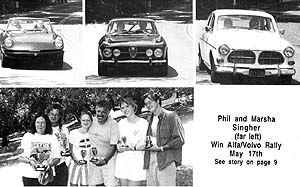 Now, if you do want to win a rally, you'll have to figure that out for yourselves. I'm not going to give away any secrets. There's still next year's event to be won. Maybe even by us. OK, we were too disorganized to take pictures of the rally this year. The photos are from several previous Volvo/Alfa rallies. The clip from the magazine cover is from the May-June '97 issue of the VSA Western States Magazine. Easy-print version of this article |