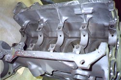 Marsha Singher singher@pacifier.com It's been a while since we've gotten back to Bob at The Works. Carolyn's Amazon is coming along nicely. When we left off previously, Bob had sprayed the body with several coats of primer and was sanding each coat to make sure that the shape and structure were perfect before the car was painted. A mid-70s "Stork Blue" from the 240 series was chosen by Carolyn for the body color, a test panel was sprayed and approved, but when the whole body was painted, she decided that the car was "too blue." She and Bob looked at earlier stock colors and chose the mid-60s "Slate Blue." The body was re-sanded and the new color applied. It looks just great! The body panels were hung, aligned and painted, and the entire car was clear-coated. While the paint was curing, Bob took the engine apart and ordered the parts necessary to rebuild it, including new pistons, bearings, camshaft, oil pump and timing gears. Meanwhile the chrome has just returned from the platers and looks just like new.