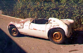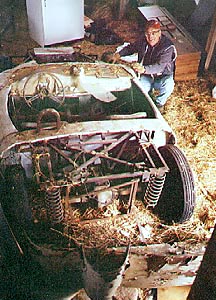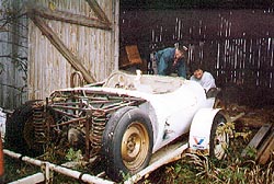 The first piece of one inch square thin-wall tubing was cut, fittingly, on January 1 of 1959. Larger dimension tube ultimately proved unnecessary. Precious little of the front suspension on the Volvo was worth saving, so a 1948 Studebaker unit was pulled from a local boneyard. This was promptly lightened and outfitted with Gabriel shocks, which at With the chassis taking form, and receiving its front and rear ends, engine and trans, the anticipation was overwhelming, and the maiden voyage was performed before the body was attached. With open exhaust and a produce crate for a seat, the young men conducted tests on its driveability. At least, that may have been the official explanation. The center section of the body was constructed from aluminum sheet stock and lacks any compound curves. Meanwhile, in Davy's father's barn, the mold for the front and rear sections were being built using wooden bucks, chicken wire and burlap topped with a plaster finish coat. A body of nice lines, if not constant thickness. By spring of 1960, the car had been painted. "As young men, the real purpose of the car was not realized to any great extent due to extreme lack of funds, but the potential which Don and I saw in the car more than met our expectations," said Earle. "To give an idea of the financial condition of the time, Don was serving his body man's apprenticeship at 80 cents an hour, and I was still in high school when the car was begun. Don had $1000.00 invested in the project. It was very taxing indeed." The car was sold in 1962 to raise funds for Don's trip to England, where he found employment with the Merlin Car Company, a builder of formula car chassis.