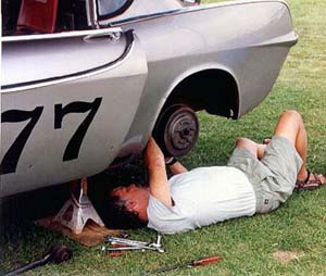 Both the racers and the vintage organizations felt something had to be done in the interests of safety. With the clubs not wanting to allow the use of the later disc brake rear end -- considered a performance advantage that might open the door to the use of other updated equipment on other makes -- we looked for alternatives and came up with the Ford drum rear end Other than safety, the chief advantage of the change is that brand new brake parts are available at your neighborhood parts store at a fraction of the cost of Volvo parts. In addition, there is a choice of drum brake sizes. The entire conversion, including all new brake parts, can cost less than the cost of a rebuild with new components for either the drum or disc brake Volvo axles. This modification retains the original suspension mounts and bolt circle, both of which are problems with adapting the disc brake rear end to early cars. It has been done on 1800s, 122s and 544s with perfect results, and has been accepted by major vintage racing organizations in the U.S. and Canada as a safety modification, using period parts, which has no significant performance advantage (not technically true, since the brakes run much cooler, the pads last longer and high performance brake linings are readily available). One car has run the Carrera Pan America Race using the conversion, and I have raced on it for ten years and see no disadvantage compared to the disc brake cars. Photo by Doug Margush