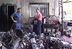 | Shlomo & Sholomo's Garage: a Volvo parts heaven. Here you can see them in front of a pile of 144 motors. | ![]() |